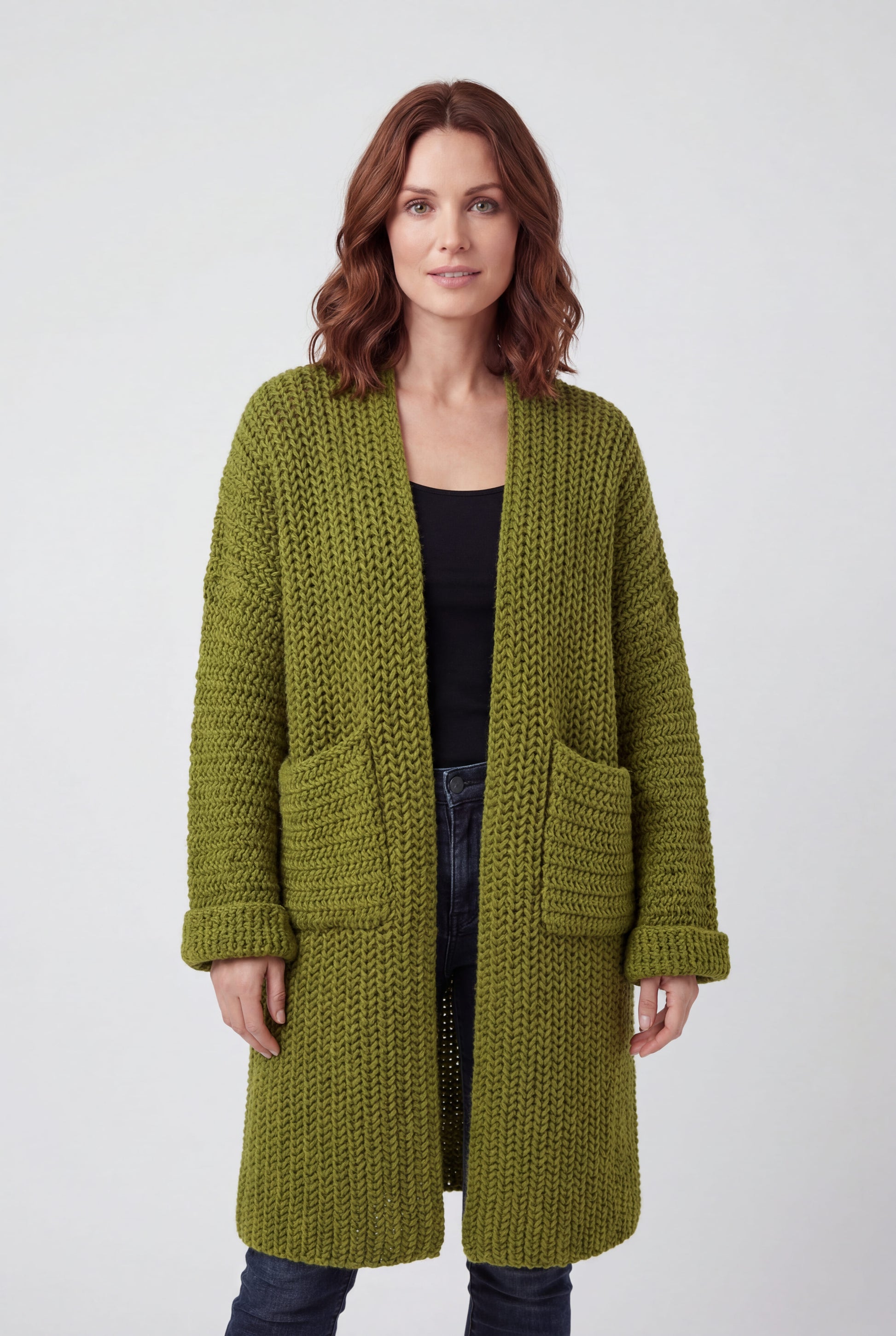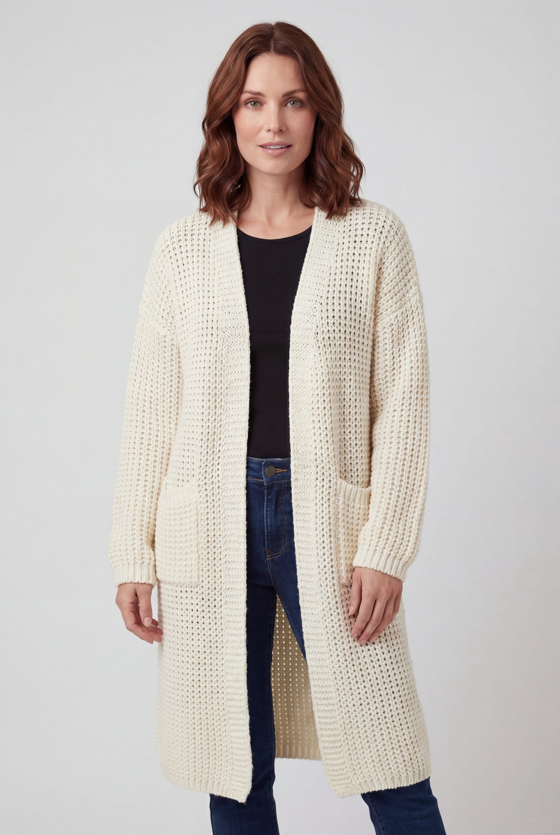 Experience the perfect blend of comfort and style with the Avery chunky-knit cardigan sweater. Designed for modern living, its oversized fit and open front make it a versatile staple for any wardrobe. Enhanced with practical patch pockets, this cardigan offers both functionality and chic appeal, perfect for casual outings or cozy nights in.